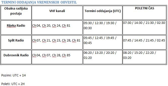 Vremenska obvestila/opozorila na pomorskih radijskih postajah!